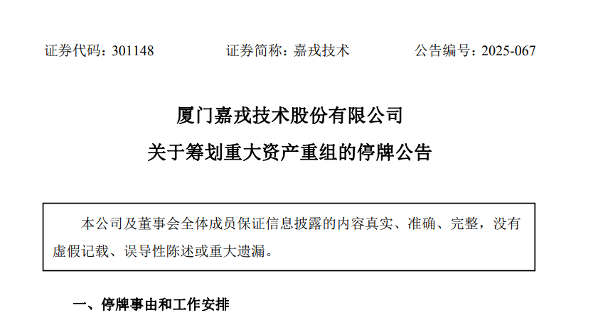 1、关于筹划重大资产重组的停牌公告,嘉戎技术,2025-11-17