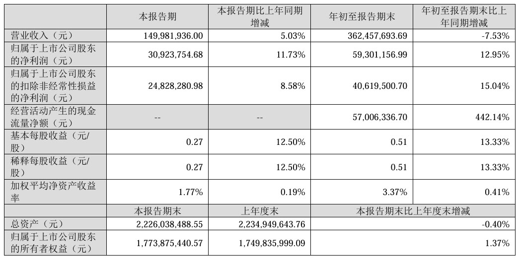 前三季度净利润增长12.95%